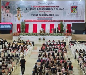 OborSulut.com,Tondano – Pemerintah Kabupaten (Pemkab) Minahasa menggelar ibadah syukur memperingati genap satu tahun masa kepemimpinan Bupati Robby Dondokambey (RD) dan Wakil Bupati Vanda Sarundajang (VaSung).