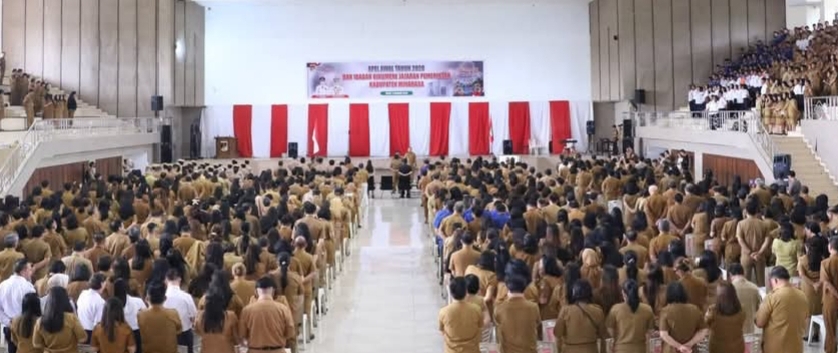 OborSulut.com,Tondano – Bupati Minahasa Robby Dondokambey, SSi., MAP. memimpin apel perdana jajaran Pemerintah Kabupaten (Pemkab) Minahasa di awal tahun 2026 yang dirangkaikan dengan Ibadah Oikumene, bertempat di Gedung Wale Ne Tou Minahasa, Senin pagi (5/1/2026)