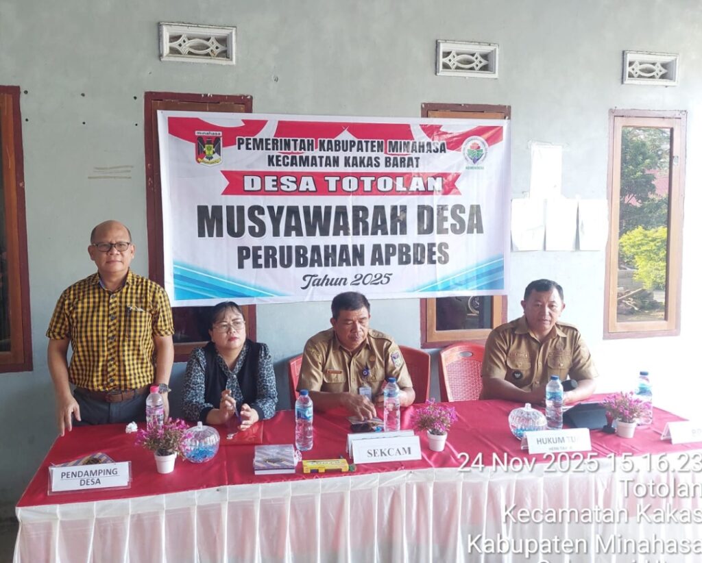 OborSulut.com,Kakas – Pemerintah Desa Totolan di Kecamatan Kakas Barat melaksanakan Musyawarah Desa (Musdes) Perubahan APBDes 2025 yang adalah forum penting untuk membahas dan menyepakati perubahan anggaran pendapatan dan belanja desa karena ada kebutuhan prioritas atau kondisi lapangan yang dinamis.