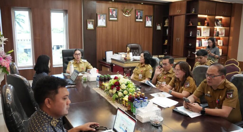 OborSulut.com,Tondano – Wakil Bupati Minahasa Vanda Sarundajang, SS, memimpin rapat bersama BPJS Kesehatan Kantor Cabang Tondano di ruang kerja Wakil Bupati Minahasa, Selasa (21/4/2016). Rapat tersebut dilaksanakan dalam Forum Komunikasi yang membahas strategi penguatan rekrutmen cakupan serta peningkatan tingkat keaktifan peserta guna mencapai Universal Health Coverage (UHC) Kabupaten Minahasa tahun 2026.