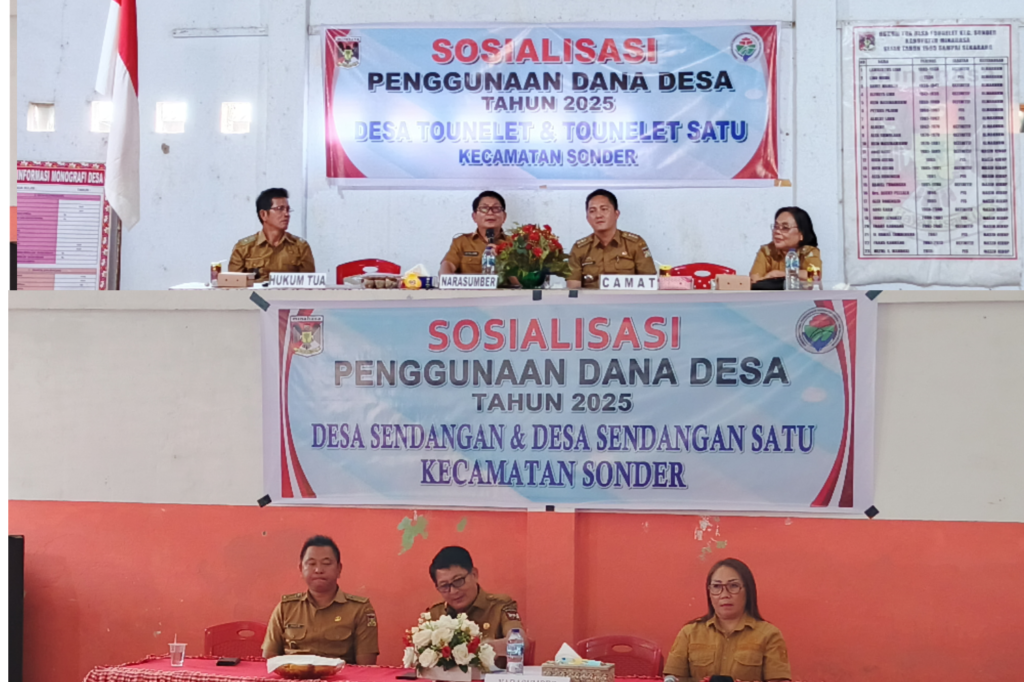 OborSulut.com,Sonder – Pemerintah Desa Sendangan, Sendangan Satu bersama Desa Tounelet, Tounelet Satu melaksanakan sosialisasi penggunaan Dana Desa (DD) tahun 2025. Kegiatan yang dibuka oleh Pemerintah Kecamatan Sonder dilaksanakan di dua tempat berbeda yaitu di BPU Desa Sendangan dan BPU Desa Tounelet pada Selasa pagi (5/8/2025) sampai selesai.