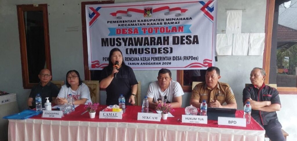 OborSulut.com,Kakas – Pemerintah Desa Totolan di Kecamatan Kakas Barat melaksanakan Musyawarah Desa Rencana Kerja Pemerintah desa Tahun 2026. Musdes pembahasan RKP Desa Totolan 2026 yang dilaksanakan Jumat (10/10/2025) adalah Musyawarah Desa untuk membahas dan menyepakati Rencana Kerja Pemerintah (RKP) Desa yang akan dilaksanakan pada tahun 2026 yang mengacu pada Rencana Pembangunan Jangka Menengah Desa (RPJM Desa).