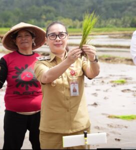 OborSulut.com,Kakas – Wakil Bupati Minahasa Vanda Sarundajang, SS, (Vasung) menghadiri Gerakan Tanam Padi dalam rangka mendukung swasembada pangan. Dengan tema “Mari Makan Apa yang Ditanam dan Tanam Apa yang Dimakan”, kegiatan tersebut digelar di persawahan Desa Touliang, Kecamatan Kakas Barat Kabupaten Minahasa, Senin pagi (2/3/2026)
