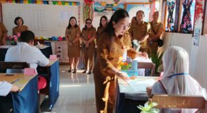 OborSulut.com,Kawangkoan – Wakil Bupati Minahasa Vanda Sarundajang,SS membuka pelaksanaan Ujian Sumatif Akhir Jenjang (USAJ) di SD Negeri 1 Kawangkoan, Senin pagi (5/5/2025). Saat tiba di SDN 1 yang ada di Kelurahan Kinali, Vanda Sarundajang langsung mengisi buku tamu yang disiapkan oleh siswa yang bertugas piket.