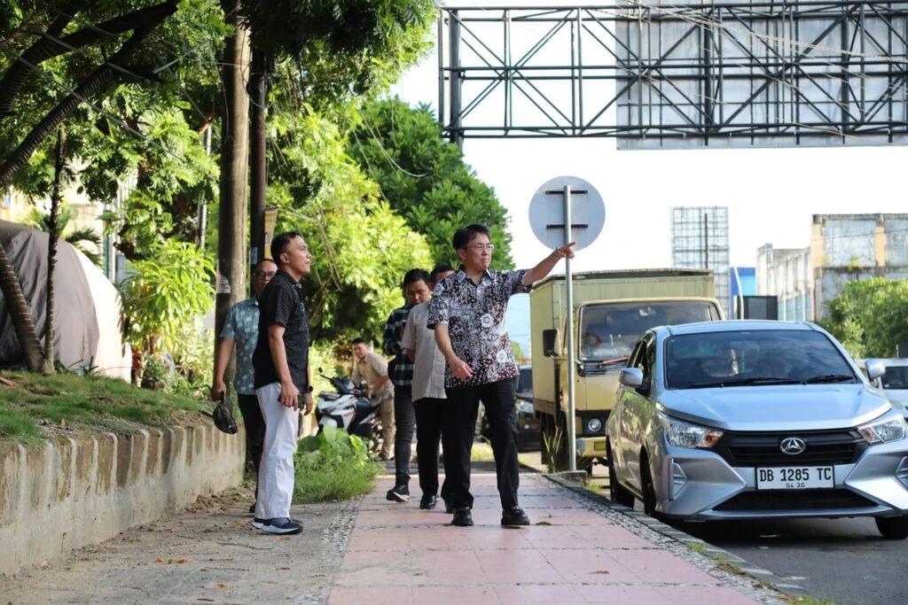 Walikota selanjutnya berjalan menyusuri trotoar yang belum dibuat pedestrian untuk melihat mengkaji dan menganalisis kemungkinan pembuatan pedestrian lanjutan. Wali kota berjalan kaki hingga ke kawasan Marina, putar balik menuju Pasar 45.