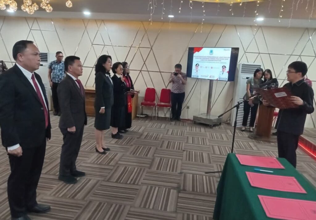 OborSulut.com, Manado – Wali Kota Manado Andrei Angouw, melantik dan mengambil sumpah pejabat pimpinan tinggi pratama dan administrator dilingkungan pemerintah Kota Manado di Ruang Toar Lumimuut, Kantor Wali Kota Manado, Kamis pagi (27/11/2025)